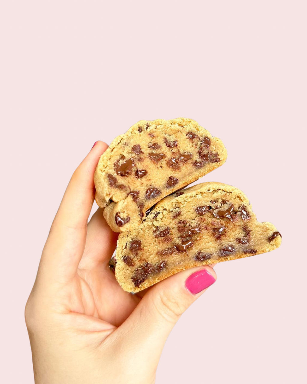 Our Chocolate Chip cookies are THICK, OOEY-GOOEY, and as close to raw cookie dough texture as you can get!